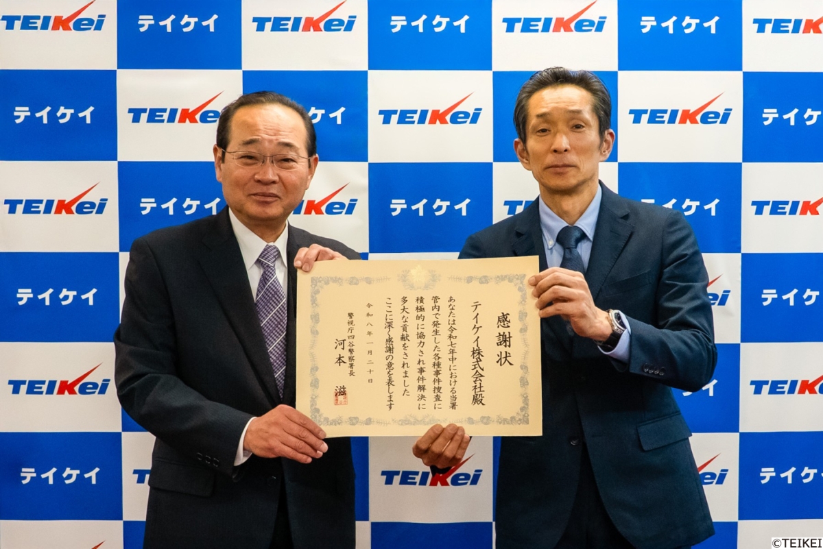 令和8年1月20日、当社本社において四谷警察署長(警視正)より、「令和7年中における各種事件捜査に積極的に協力され事件解決に貢献した」とされ、感謝状が授与されました。